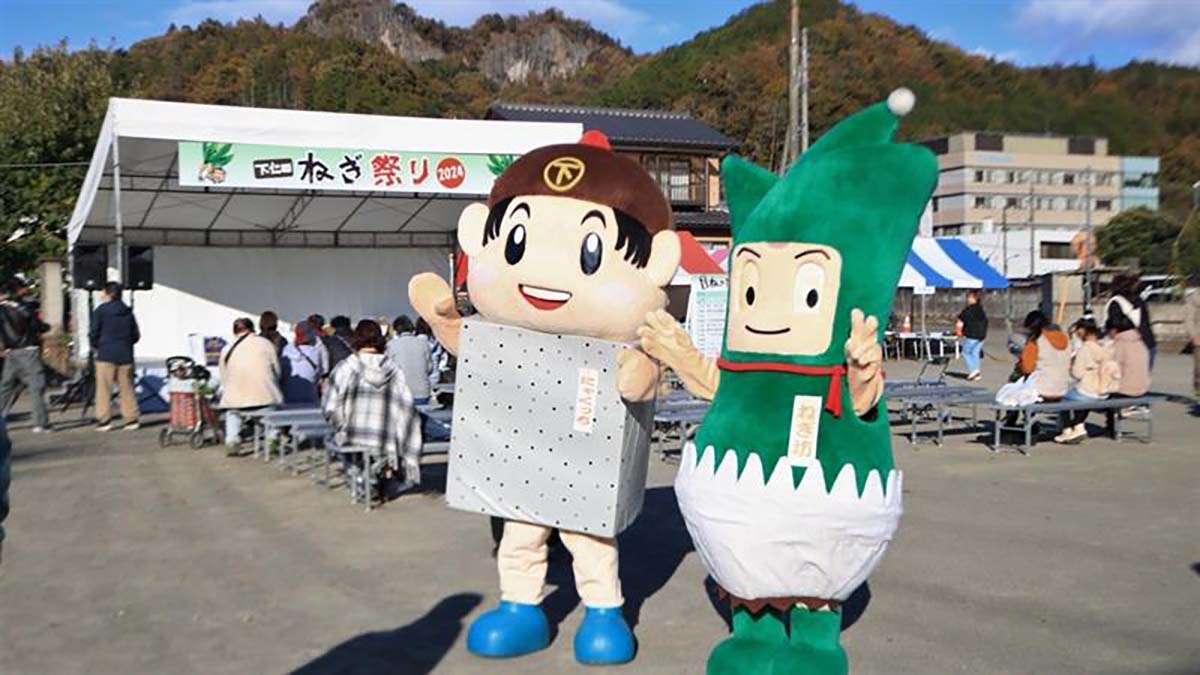 ▲左:下仁田公認キャラクター「にゃくっち」/右:「ねぎ坊」 下仁田ねぎ祭りは、11月から1月頃が収穫期の「下仁田ねぎ」を味わい、楽しむイベントです。下仁田ねぎなどの農産物の直売や、自分で焼く「特製下仁田ねぎま串」、競り市やお笑いライブなどイベ...