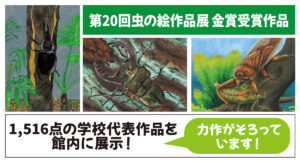 県内の小学校や特別支援学校(小学部)の児童が夏休みに描いた「虫の絵」の展示作品展。虫のからだのつくりをよくみて描いた作品や、虫との出会い、ふれあいを表現した作品など力作を展示します。