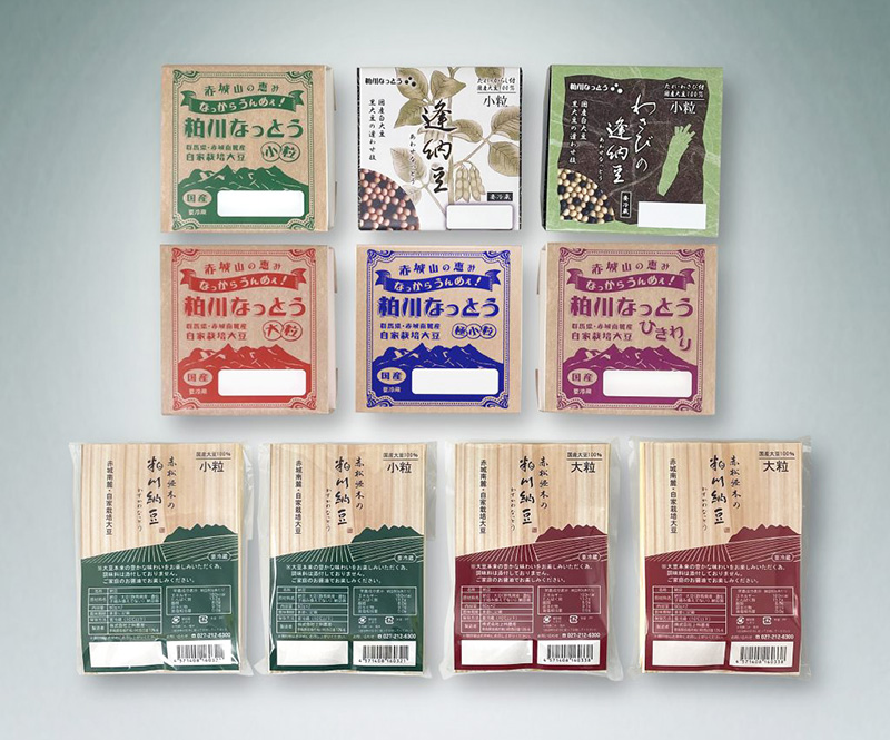 豆の味が生きた納豆を作ることを目指し、大豆の栽培から加工に至るまで、全ての工程を自ら手がけている粕川納豆。赤城山南麓は納豆作りの原点であり、その風景は納豆のパッケージにも描かれています。工場設立と同時に納豆に対するこだわりやおいしさを伝える納豆の専門店「粕川納豆 FACTORY SHOP」を開業。2025年10月1日にはお土産やギフトも扱う新店舗がオープンしました。群馬県産の赤松で作られた容器で発酵させた経木納豆や、豆本来の味を引き立てるわら納豆、黒千石大豆と地塚大豆を使用した逢納豆など、スタンダードシリーズとともにぜひご賞味ください。納豆好きな方をはじめ、健康志向な方に贈るギフトとしても大変好評です。