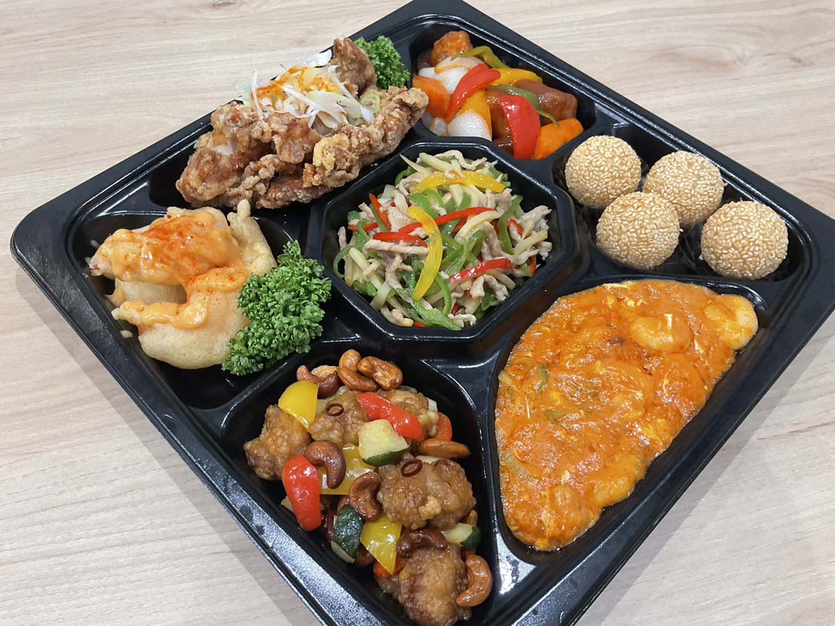 〈内容〉エビのチリソース、すぶた、油淋鶏、鶏肉のカシューナッツ炒め、青椒肉絲、エビのマヨネーズソース、ごま団子