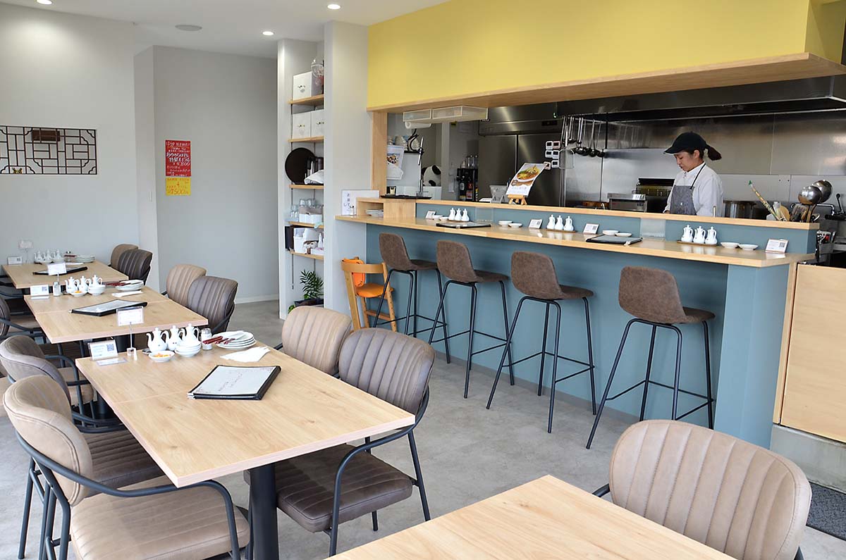 お散歩コースのような川沿いに、今年6月にオープンした中華レストランです。「マチ中華」というとラーメン屋さんをイメージするかもしれませんが、ここは女性シェフがちょっとオシャレに中華料理を提供する「Machi中華」です。清潔感のある店内は、カウンター席とテーブル席があり、女性1人でもご家族連れでも入りやすい雰囲気になっています。