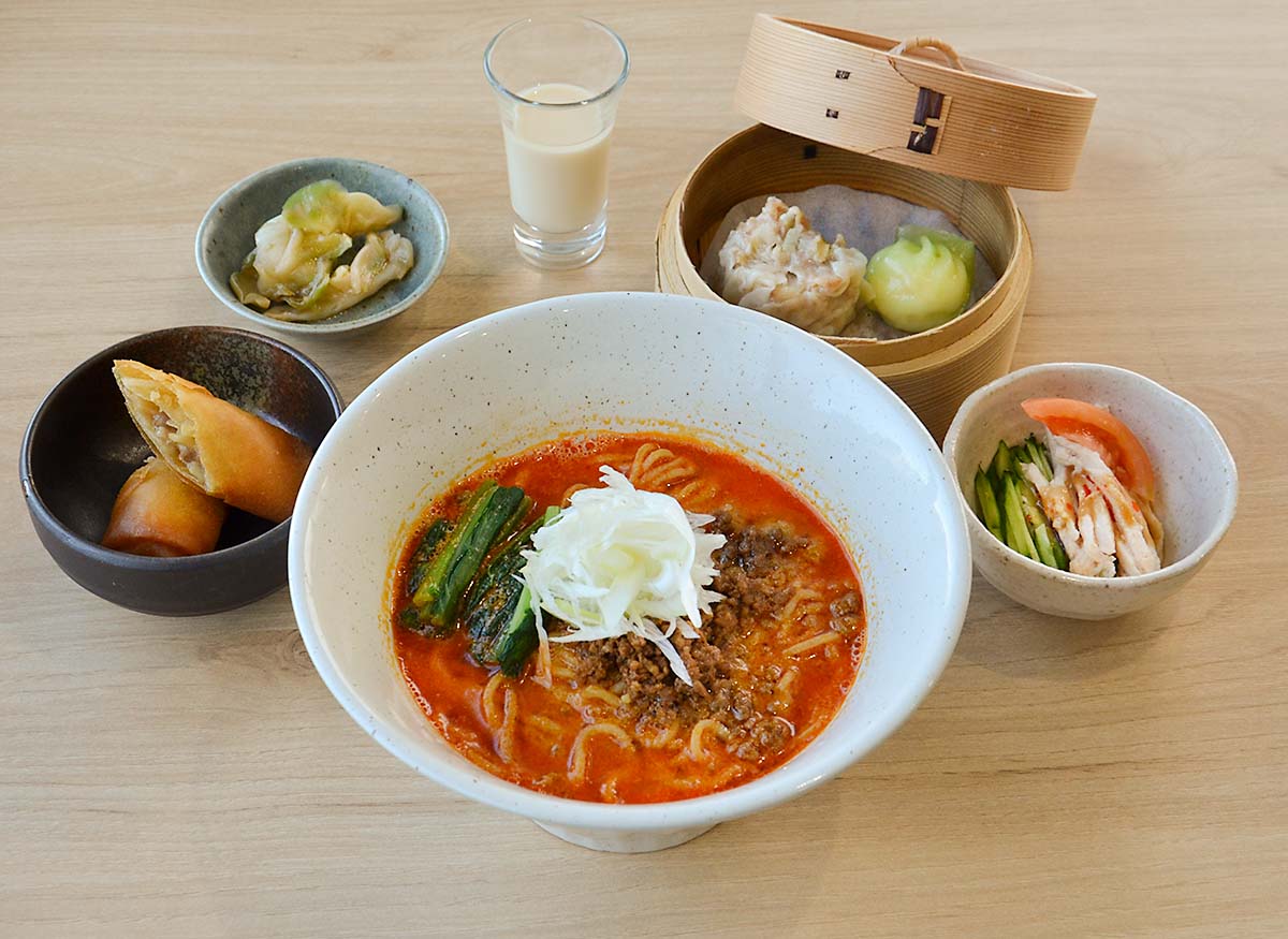 オススメは「あめはれ満足ランチ」。油淋鶏などのメイン料理に、点心3種・小鉢・ご飯・スープ・漬け物・デザートが付いた、まるでコースのようなボリュームのセットです。また、たんたん麺や醤油たんめんなどの麺類を中心としたランチセットも人気です。