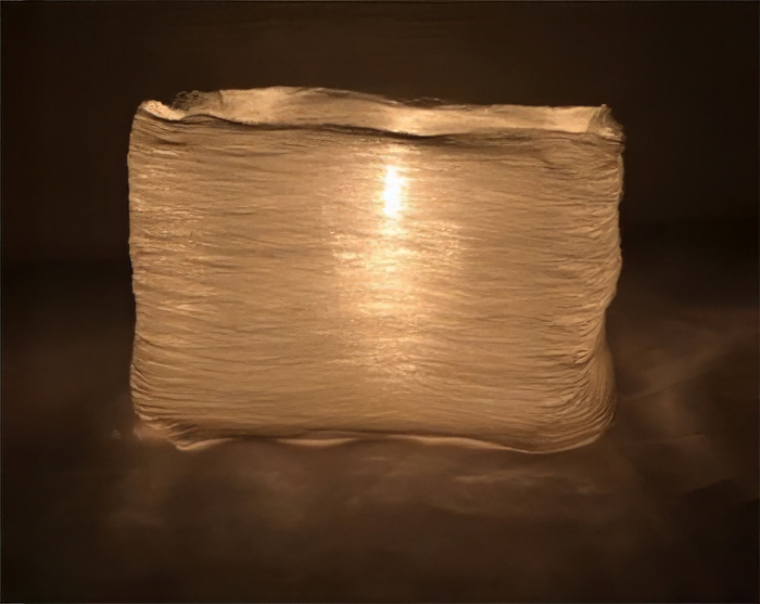 ろうそくの灯りで輝く生糸