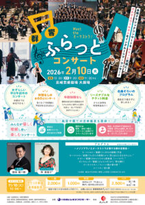 リーズナブルなチケット料金で、誰でも「ふらっと」来場でき、クラシック音楽を気軽に楽しめるインクルーシブコンサート。平日午前中の約60分公演。未就学児や障がいのある方も気軽にご来場ください。