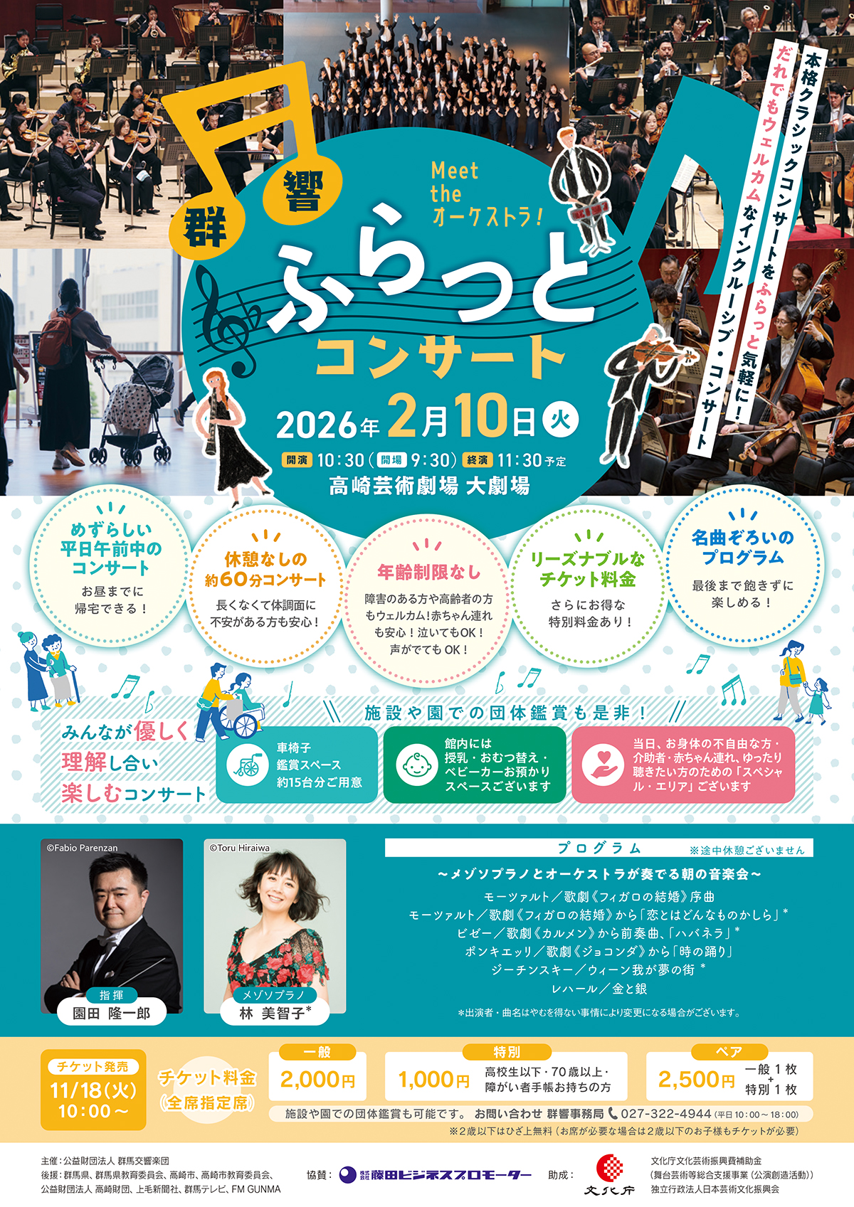 ・車椅子ご利用などお手伝いが必要な方は事前に群響事務局 027-322-4944 へお問い合わせください。