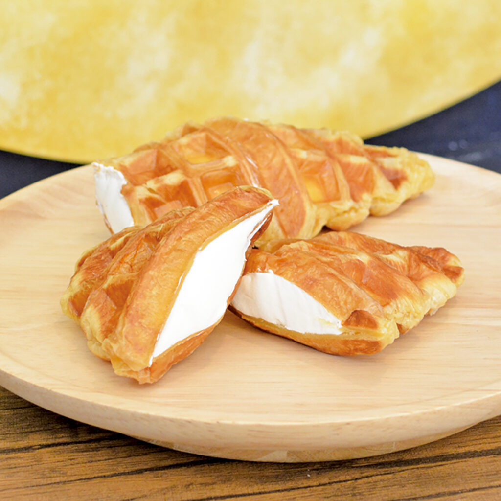 ワッフル型で焼き上げたくろっふるにホイップたっぷり!【クロワッサン専門店 くれせんと】