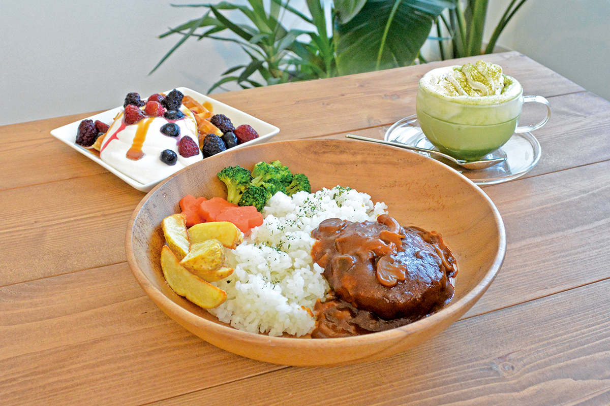 ▲デミグラスハンバーグプレート/アメリカンワッフル/抹茶ミルク 前橋市江田町にある秘密基地のようなカフェ「KALR’s cafe」では、ワンちゃんと一緒に食事やデザート・お酒をお楽しみいただけます。パスタやピザ、ハンバーグにカレーなど定番人気のお食事... -