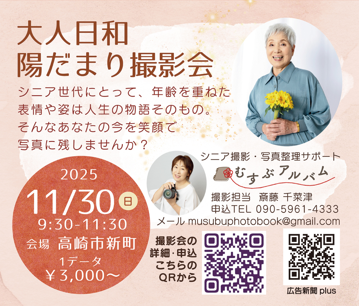 大人日和 陽だまり撮影会【シニア撮影・写真整理サポート むすぶアルバム】