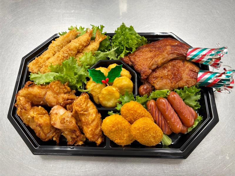 ▲クリスマスオードブル2,600円(ローストチキン2本) ●クリスマスオードブル 2,600円(ローストチキン2本)●オードブル(から揚げ) 2,100円●クリスマスボックス(ローストチキン3本)1,500円●クリスマスボックス(から揚げ) 1,500円 限定メニューは、...